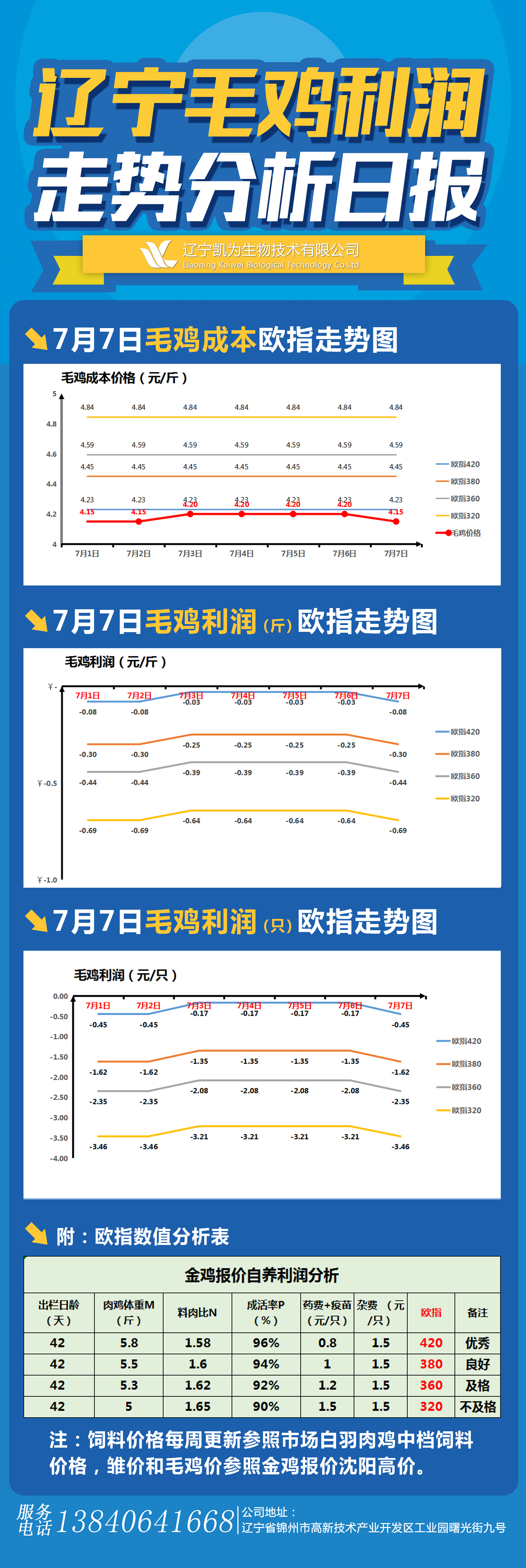 7月7日遼寧地區毛雞利潤走勢分析圖